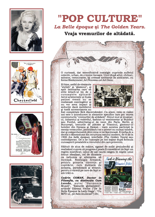"POP CULTURE" – La Belle Époque si The Golden Years. Vraja vremurilor de altadata